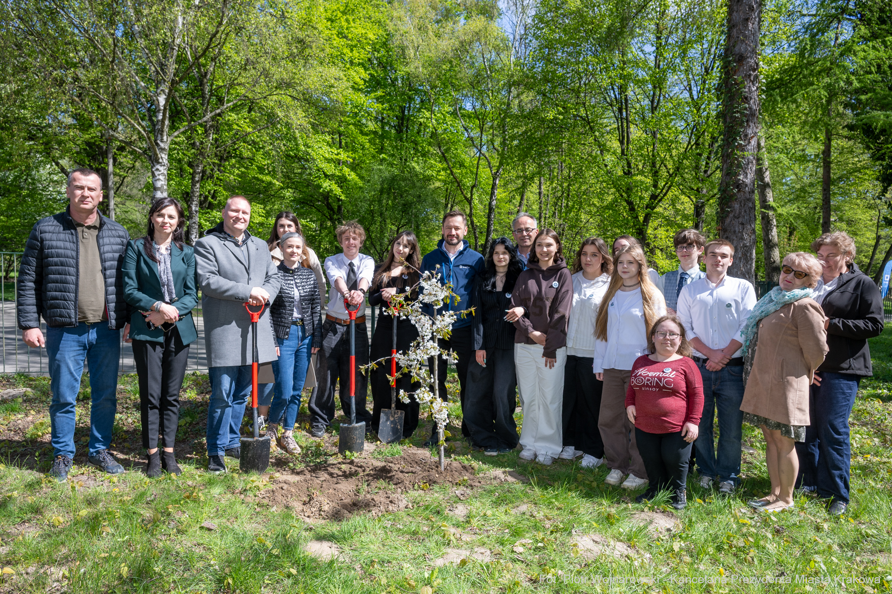 Prezydent Miszalski przekazał wiśnię ptasią uczniom Trzydziestki - uroczystego odbioru drzewka wraz z jego wkopaniem na terenie szkoły dokonała klasa 1c z wychowawczynią Panią Martą Janeczek. Ponadto na jednej z ławek parkowych zamontowana została pamiątkowa tabliczka.