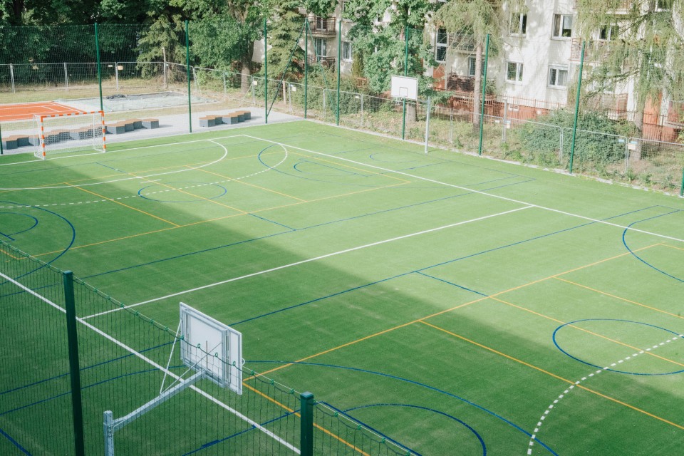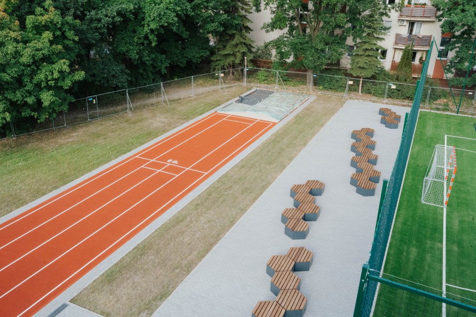 Boisko zewnętrzne i bieżnia - jako dopełnienie zaplecza sportowego.