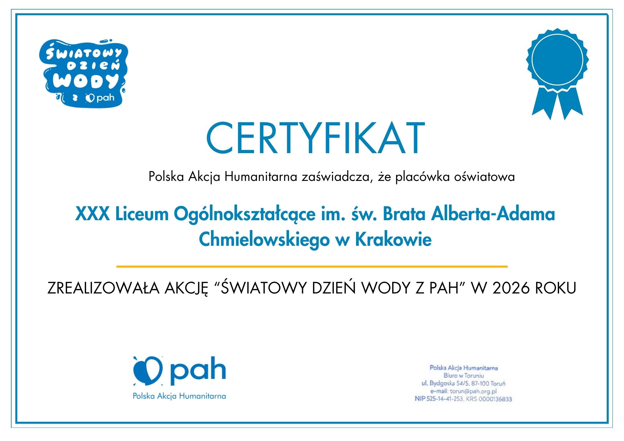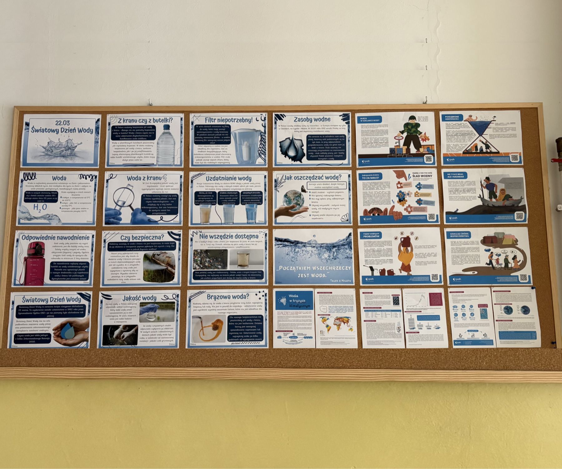 W ramach obchodów Światowego Dnia Wody nasza szkoła włączyła się w działania edukacyjne realizowane we współpracy z Polską Akcją Humanitarną. Tegoroczne aktywności odbywały się pod hasłem „Wirtualna Woda” i koncentrowały się na zagadnieniu ukrytego zużycia wody oraz wpływu naszych codziennych wyborów na jej globalne zasoby. Uczniowie mieli okazję poszerzyć swoją wiedzę poprzez różnorodne formy aktywności. Przygotowaliśmy gazetkę tematyczną oraz wystawę plakatową, które przybliżały znaczenie wody, skalę jej zużycia oraz zagrożenia wynikające z kryzysu klimatycznego. Na wystawie znalazły się również materiały edukacyjne, takie jak broszury „Woda w kryzysie klimatycznym” oraz „Woda jako globalne wyzwanie”.