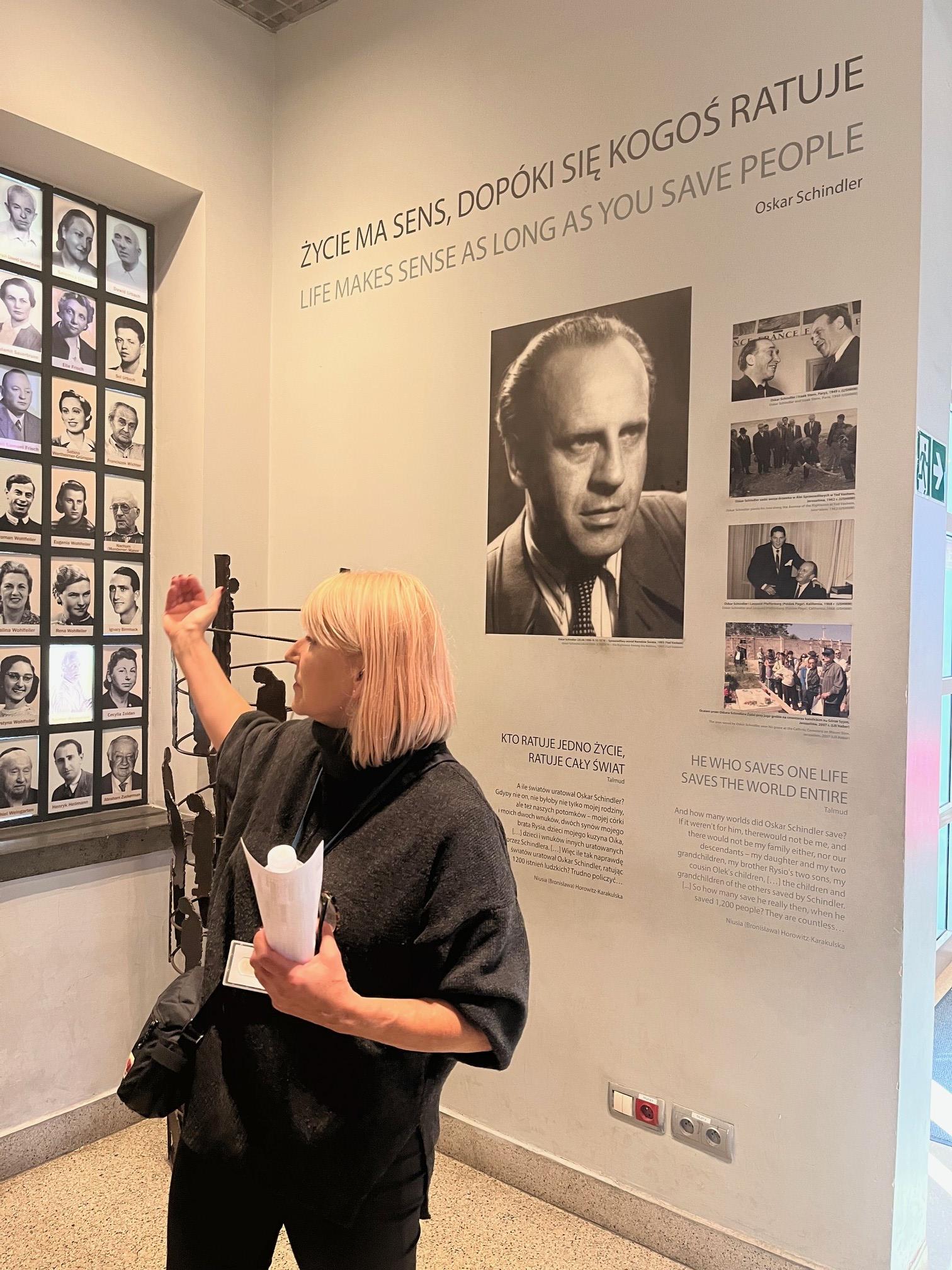 NastÄ™pnie grupa udaÅ‚a siÄ™ do Muzeum Oskara Schindlera, mieszczÄ…cego siÄ™ w dawnej fabryce naczyÅ„ emaliowanych przy ulicy Lipowej. Wystawa w niezwykle przejmujÄ…cy sposób ukazuje losy mieszkaÅ„ców Krakowa w czasie okupacji niemieckiej. Uczniowie mieli okazjÄ™ poznać postać Oskara Schindlera, który uratowaÅ‚ ponad tysiÄ…c Å»ydów, zatrudniajÄ…c ich w swojej fabryce.